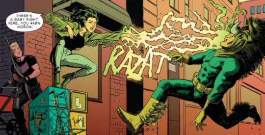 Jess has never wanted/liked/extensively interacted with children, has a MESSED up past, and is known for being a violent loner. Again, there's humanizing and character growth, and then there's totally changing who the character is. But I like it. I think Hopeless did a good job of framing her motivations, letting her grow towards a new role, but making sure she still kicked ass. Again, I would like to see a little more acknowledgement of her past; not to dwell on it or let it consume her present, but just to remember how far she's come.
