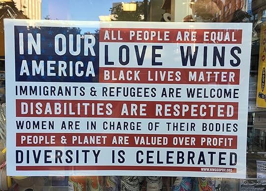Portland Many shops and restaurants have signs explicitly welcoming people of all races, ages, genders, nationalities, (dis)abilities etc. But I've never seen as many homeless people as in Portland. They're mostly in friendly groups, often outside one of many hostels and other places offering help.