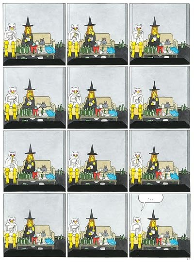 Okay, my rating may have something to do that I also finished today the masterpiece of the 2014 Nobel Prize winner, Patrick Modiano, Dora Bruder. One More Year is the fourth book I have read of Hanselmann, and it is a stoner comic, as were the others, with irresponsible gross-out humor, following the spiraling-out-of-control antics of roommates/friends, Megg, a witch, Mogg, a cat, Owl and others. They're all mean to Owl and this is part of the "fun." In the second book in this series that I read, it appeared Hanselmann was going to take this crazy drunken stoner thing in the direction of significance, beginning to deal with Megg's serious psychiatric issues, her spiraling depression. I thought: brilliant, he's making something that was merely trivial and silly into something important and significant.