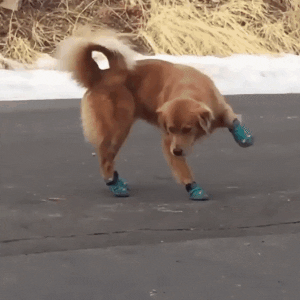 The following gif is perhaps a perfect symbolic representation of the heroine's inability to handle her new role as a wife. Linsey's like this dog, who's obviously uncomfortable wearing her new shoes: