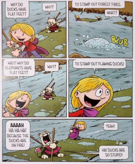 Recommended for young readers who love action and bad jokes, but also warm, fuzzy feelings! Maybe check out the earlier books first, though.