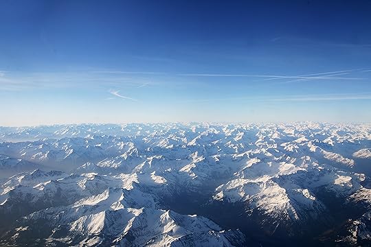 My flight followed a path across the Alps, and as the bright peaks spread beneath us, I read about Goethe’s trip through alpine mountain passes: nothing could vie with the view of the mountains covered with snow and glaciers. We sat down before some rocks to shelter us from the cold wind, with the sunshine full upon us, and highly relished our little meal.