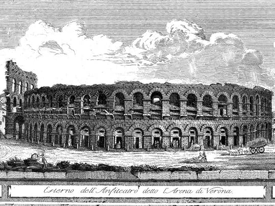 His book collection probably travelled more comfortably, stowed away in the mule packs or in the back of the vettura, but I’d like to think he had at least one little book in his pocket for when he took a rest—as I did on the steps of the amphitheater in Verona which I visited for the first time on the 16th of September last. I took out my book and read a few pages, and might well have echoed Goethe’s words about reading Virgil while contemplating Lake Garda, because what should I read while sitting in the sun on the steps of the amhitheatre but the following lines: Well then, the [Verona] amphitheater is the first important monument of the old times that I have seen—and how well it is preserved! When I entered, and still more when I walked round the edge of it at the top, it seemed strange to me, that I saw something great, and yet, properly speaking, saw nothing. I was quite alone..