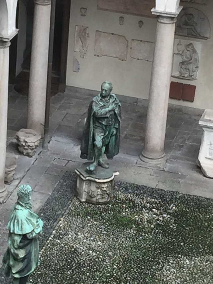 While we might both be a little doubtful about over elaborate architectural decor, he and I share a definite love of art galleries. I spent many happy hours in the Pinacoteca Brera, the Ambrosiana and a host of other galleries, and can easily relate to his enthusiasm for art: It lies in my nature to admire, willingly and joyfully, all that is great and beautiful, and the cultivation of this talent, day after day, hour after hour, by the inspection of such beautiful objects, produces the happiest feelings. One happy feeling I definitely experienced was finding a statue of Goethe himself in the courtyard between the Pinacoteca Ambrosiana and the Biblioteca of the same name in Milan. I had been disappointed to find no reference to the city in his book but finding his statue there made up for that. And since Goethe was an artist as well as a writer, the Ambrosiana complex which houses both books and paintings, was the perfect place for his monument.