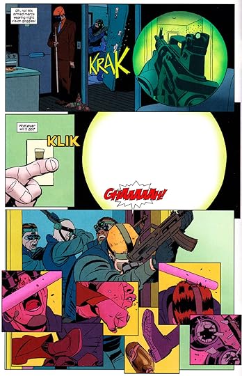 Yet while it is significantly more lighthearted than a Frank Miller story, make no mistake Waid knew when to make things dark and grim. There's a few rather brutal deaths, a supervillain plot that involves fantastical but very real human trafficking, another plot involving casually killing prisoners trying to recreate the circumstances that gave Matt his powers, etc.