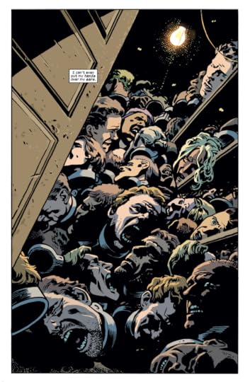 For 75% of this book, I found myself a little bored with the stereotypical tropes of swashbuckling superheroics and was waiting to see if there was a point to all of this apparent fluff. I know this was an intentional tonal shift for the character, and I'm sure it was refreshing for readers at the time, but it doesn't read any differently to an average to mediocre Marvel comic. The first 500-600 pages meander with a series of arcs that don't do a whole lot to pull me in. However, any issues that took a moment to explore the Matt and Foggy friendship kept me from shelving the book entirely. Waid cleverly peppers in a few moments where Foggy seems to question Matt's overly chippy attitude and that kind of meta commentary was interesting.