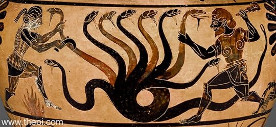Now it came to pass that after the battle with the Minyans Hercules was driven mad through the jealousy of Hera and flung his own children, whom he had by Megara, and two children of Iphicles into the fire; wherefore he condemned himself to exile, and was purified by Thespius, and repairing to Delphi he inquired of the god where he should dwell. The Pythian priestess then first called him Hercules, for hitherto he was called Alcides. And she told him to dwell in Tiryns, serving Eurystheus for twelve years and to perform the ten labours imposed on him, and so, she said, when the tasks were accomplished, he would be immortal. (Apollodorus, Bibliotheka II.4.12 (Frazer, trans.))Euripides, accused by some (with some justice perhaps) of being an atheist, reverses the chronology here by having the twelve labors completed before the murders of Megara and their children, as Heracles enters the text to his still living family and has “brought the triple-headed dog” (l. 611), Cerberus of Hades, which is generally accounted the 12th labor (Bibliotheka II.5.12). Normally, the labors were conceived as part of the atonement for the crime, but here, the crime occurs after the labors are finished. It’s a nice setup for some anti-traditionalist views, such as Lycus’ suggestion that overcoming the Lernean Hydra and the Nemean Lion is overstated (l. 151 ff.) or that “his reputation fighting beasts” (l. 158) with a bow is nothing compared to real warfare as part of a phalanx of hoplites. Heracles' quasi-father Amphitryon articulates the contrary view that fighting in a phalanx is not so big a deal, and that Heracles is slick for using a bow & arrow: “This is best in war: to preserve yourself and to hurt your foe” (l. 201).