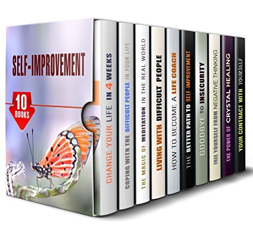 In Change Your Life in 4 Weeks , you'll learn how to live a happy, healthy and unhindered life In Coping with the Difficult People in Your Life , you'll learn tips to positively react to their irritating behavior In The Magic of Meditation in the Real World , you'll learn how to use meditation for focus, relaxation and so much more! In Living With Difficult People , you'll learn to deal and live with people who are screwed-Up In How to Become a Life Coach , you'll learn to influence & inspire people to follow their dreams and change their lives for the better In The Better Path to Self-Improvement , you'll learn to leave your old life behind and start a new one In Goodbye to Insecurity , you'll learn the best ways to dealing with jealousy and boosting self-esteem In Free Yourself from Negative Thinking , you'll learn 21 positive ways to stop worrying, relieve stress & be happy In The Power of Crystal Healing , you'll learn to cleanse and declutter your mind, body and soul with crystal healing therapy In Your Contract With Yourself , you'll learn your binding agreement to become a happier, better you