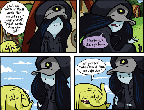 This one was perfectly fine, and essentially nothing else. It also concludes in a way that I generally dislike and that Adventure Time stories so consistantly do, which is just "silly reason" the ending so that it can end abruptly. I find that so pointless and uncreative.