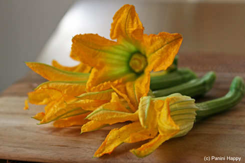 The food that get my attention: the fish in nutty crust; and the squash flowers.