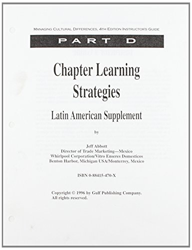 This is an instructor's manual (Latin American supplement) to a guide which shows how to develop the cross-cultural expertise essential for succeeding in the world of rapid economic, political and cultural changes. These global market shifts should make this edition a useful resource. It reveals how capitalize on expanding international markets; improve cross-cultural business communication; master the subtle, but important art of business protocol; and create a successful multicultural management style. The book is packed with useful insights into understanding, co-operating with, and motivating people from various cultures - Asian, European, Middle-Eastern, African and Hispanic. Customized supplements for Asian (5466) and European (5472) perspectives are available free to qualified instructors.