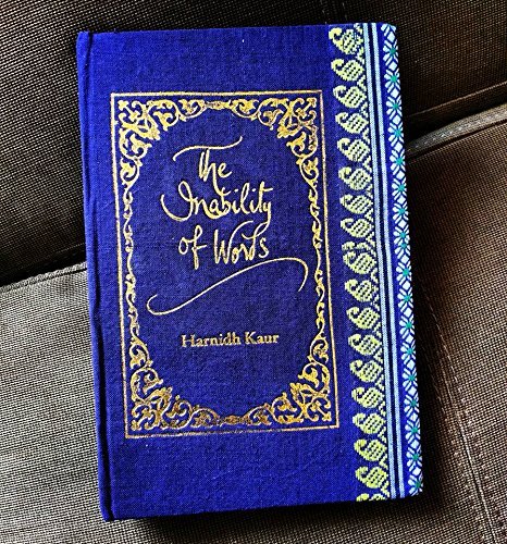 I think I should use the "hide entire review because of spoilers" option because it feels like anything I say about this beautiful book will spoil it for you. Let me start with the cover. It's beautiful, and the feel of the cloth cover on your hands lends it a certain sense of character, a character that weaves its way throughout this collection. The first and most obvious thing I should say about this book is the title is misleading. In my opinion, it should honestly have been "The Imagery of Words" because good God, there are so many amazing evocative images in every poem it's like I came out of an art gallery where the images are seared onto your eyes. And Harnidh has used those images to take us on a journey, where I find myself having connecting to poems and forming ideas that were not there a moment ago. I've known some to argue that lyricism is being lost in poetry because of the loss of rhyme, but in "The Inability of Words", there is a sort of easy flow to the words in free verse, a flow that makes you want to read more and more poetry. While a lot of the poems are about love, they aren't overtly sentimental, often employing a light touch otherwise missing in contemporary romantic poetry. A lot of poetry also managed to capture a very clear sense of place, which was breathtaking, as if I had suddenly been dropped into a new city, these words floating in my head as I turned round and round to try and get a sense of this strange land that I was in. All in all, I would say that this book's words have the ability to make the reader feel and dream.