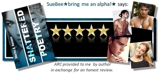 "I didn't want her ever to stop touching me. She was better than any drug-ecstasy in female form, her touch giving me more pleasure than I'd ever felt before."Told in multiple points of views, Shattered Poetry has a multi-layered plot with many characters clamoring for a better life. With a blend of forbidden romance, gang violence, broken families, and addiction dysfunction colors every moment of Shattered Poetry. The action in the plot keeps the pacing intense, and although I continued to hope for each character to find their way, they seemed to continue to sink further into their own individual torment. With complex characters, an intense plot, and tragic circumstances, Shattered Poetry is full of angst and unbridled passion. If you thought the ending in Broken English was explosive Shattered Poetry is like a crashing tsunami. With the curveball of the century, Ms. Hansen promises to keep us guessing until the bitter end.