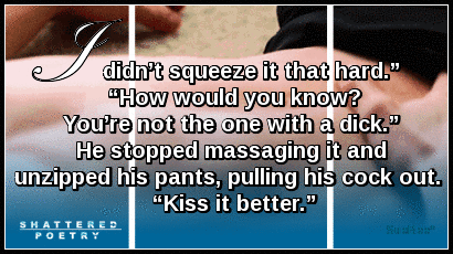 †“But you do care for me, otherwise you’d be on t top of me, riding my cock, like the other chicks I’ve been with. They’re more interested in how I look on the outside than the ugliness in here.” He tapped his head.†