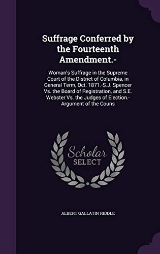 Suffrage Conferred by the Fourteenth Amendment.-: Woman's Suffrage in the Supreme Court of the District of Columbia, in General Term, Oct. 1871.-S.J. ... the Judges of Election.-Argument of the Couns