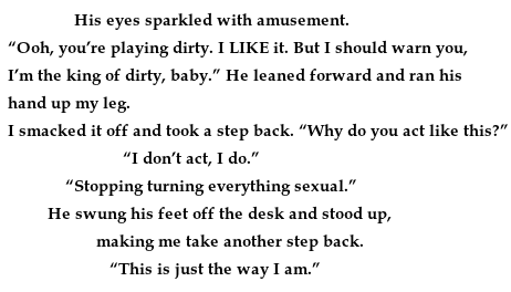"I had never met a boy with that much confidence, or even the audacity to say half the things he'd said to me."Clara