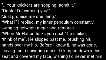 “You’re not a teacher to me; you’re just a hot chick I want to fuck.” His gaze dropped to my breasts. “And by the look of your nipples, you want me to fuck you hard.”