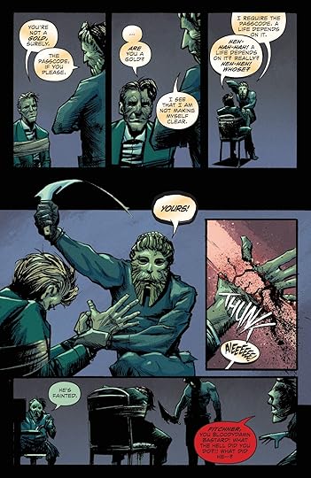 Beautiful art and a thrilling start to Fitchner's journey to become the man. Loved the use of the coloured speech bubbles to denote colour and class of those speaking.