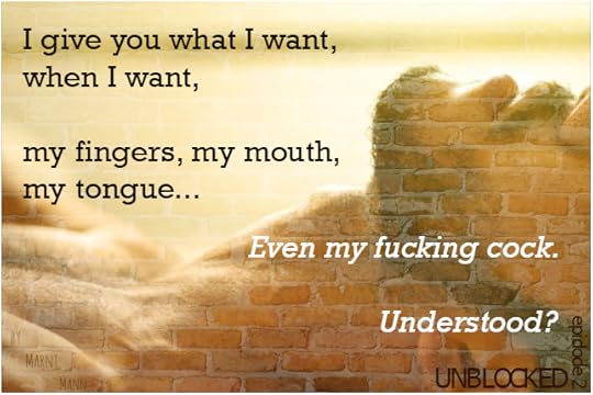 "He freed me, from the inside out.”Overall, Marni Mann never fails to craft a delicious story that I cannot get enough of. With a smoking hot alpha hero and a strong heroine, The Unblocked Series is an absolute must read!