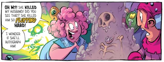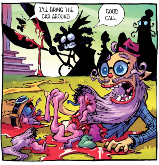 What the story lacks is more than made up for by the artwork. Skottie Young is a good writer, but he's a great artist. I mean he's fucking amazing. The man can draw cartoon death and destruction like no one I've ever seen. I'd even go so far as to put him on the same level as Eric Powell (The Goon), perhaps minus the oil-painted covers. And his super French-Canadian colorist Jean Francois Beaulieu colors, again, like no one else. He's like Matt Wilson (Paper Girls) or Lee Loughridge (Deadly Class) on lots and lots of drugs. Which is really saying something.