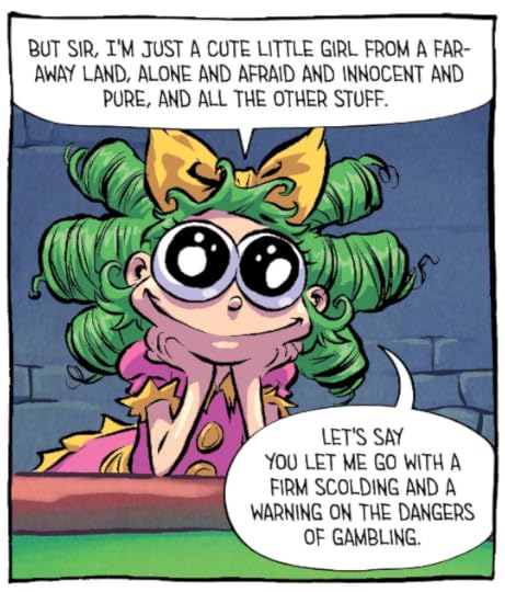 The story like Volume 1 is pretty thin. It's basic quest fantasy. She's still trying to get out of Fairyland and looking for that secret magical panacea to do it. And as Gert is generally a klutz and space cadet, she's as close to leaving as she was on day one. But there are buckets of comedy niblets here to enjoy.