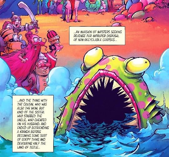 Volume 2 has more ultra violence, dark comedy, drippy colors, and wacky fantasy world building. While it doesn't feel as revolutionary now that I'm acquainted, Fairyland it still a FLUFF of a fun read and spectacularly illustrated.