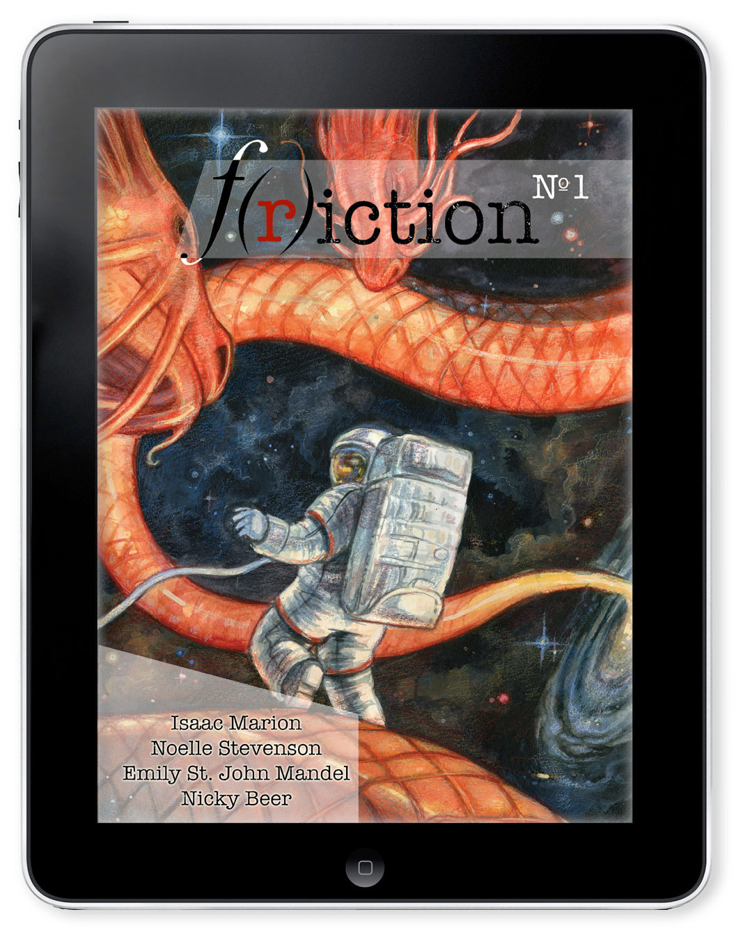 There’s no way we could have known when we sent this first issue to the printers that our readership would ignite, that we’d be shimmering on Barnes & Noble newsstands, that our contests would attract thousands of participants. And, real talk—does F(r)iction have the most adorable baby photos or what? Our very first issue features an interview with Emily St. John Mandel and an excerpt of her exquisite, tenderly-human speculative fiction debut Station Eleven, as well as an excerpt of Noelle Stevenson’s award-winning, sharply subversive fantasy comic “Nimona.” With short fiction by Isaac Marion and poetry by Nicky Beer and the Afghan Women’s Writing Project, F(r)iction #1 burns at its core with the wild imaginings and bold candor that characterize our magazine to this day.