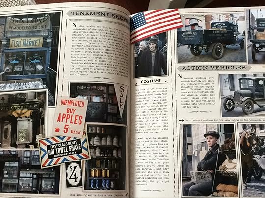 The behind the scenes look at the film truly shows the time and effort put into creating it. It's a tour through 1920s New York, the tenements, brownstones, and political climate of the day. The costumes, graphic design, and work building the set were extraordinary. The set dressing alone is something truly astonishing for the detail that went into it. Look at that typing pool again - did you notice that every desk has a different title, as well as drawers full of things associated with it, and separate notes and memos on each desk? How about the streets of New York? You can pause and look at the wares - different behind each window, each with their own labels. It's a wonderful level of detail that adds so much to the picture.