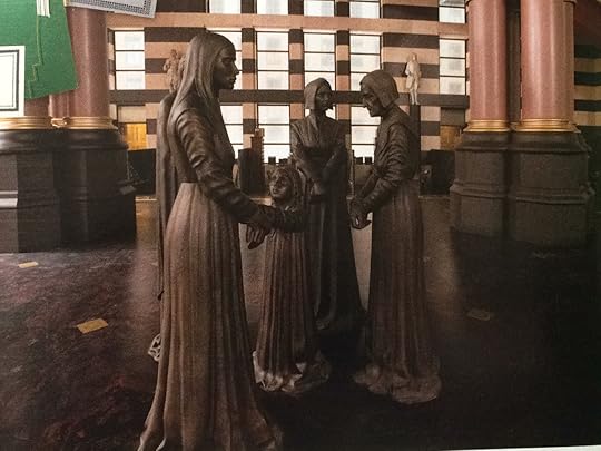 This is a very cool detail from inside MACUSA which is unfortunately not shown in the movie (the scene was cut). It shows a memorial for those who have died in the Salem Witch Trials which was of course a very important part of history for all wizardom, but especially the American witches and wizards.