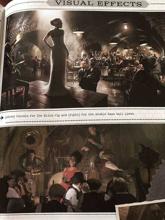 The set was built at the Leavesden studio backlot - and if you're British like me, then you know that Leavesden is where the Harry Potter Studio Tour is (spoiler alert: I've been 8 times, and will be visiting for the 9th time in August). The backlot is just beyond the Studio Tour carpark, and sometimes if you leave the Tour late enough you can see the set being lit up by the floodlights as they're filming. It was amazing to me to learn about how the set was created - upon their visit to New York they measured the bricks the buildings were made of so that the set would be absolutely perfect. The set was 800 feet long, with green screens on either end and the set was used for mainly every scene - just redressed to look like different areas of street. The artists were absolutely incredible and I just applaud all of the work that was put into creating this movie. This book just gave hundreds of people the recognition that they deserved, and I believe that now I'm going to be focusing a lot more on the different sets used in movies/shows/musicals, as these people are hardly credited apart from in the credits reel at the end of the movie, despite all of the work that they do for the movie - which is immensely more than the actors.