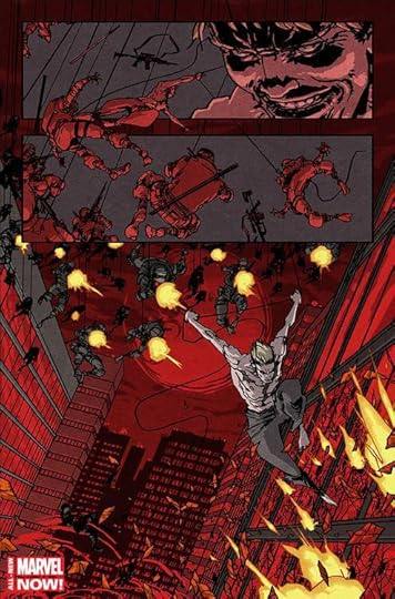 Kaare Andrews wanted to do something different with Iron Fist, and delivers some great panel layouts along the way. His main idea is to tell the Iron Fist story by way of Sin City, full of broken bones, gritted teeth, femme fatales, Frank Miller's blocky art style, and savage, pointless violence. Unfortunately, his retelling of the story takes out the heart of the character along with it. This Iron Fist has somehow forgotten that he has friends, lovers, motivations, or any personality traits beyond "I will punch bad guys until my hand breaks, and then I will heal up and punch them again". Danny has no chance to grieve or grow as a person when a major supporting character dies, or when he is confronted with the ghosts of his past, because he's already dead inside from page one. The story is in an uncomfortable liminal space between a straight reboot and sequel to the Fraction run, so it veers off deep into the symbolic weeds.