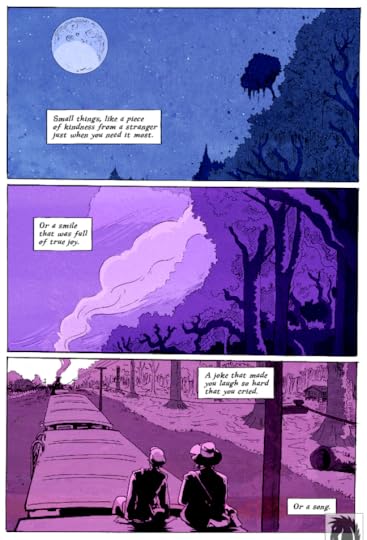 In addition to the illustrations, I also thought the plot it self was also amazing. It was incredible the authors packed so much into such a "small" graphic novel. So much happened during the duration of the story. My favorite aspect was seeing Soupy's growth as an individual.
