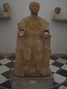 Image: Etruscan terracotta cinerary statue of Persephone holding a pomegranate (Source)