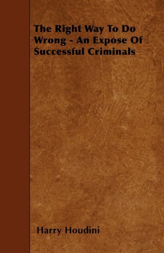 "The Right Way To Do Wrong" is a small book, but a fascinating document on the underworld as seen through the eyes of Houdini. "The Sword-Swallowing and the Stone-Eaters chapters are a marvel to read, because one, Houdini is very impressed with the skills of these people, and two, as a reader I am really drawn into Houdini's interest in these side-show adventures. Houdini is very much a class act in a world that is sometimes not that classy. Very impressive book and a must to add to libraries devoted to the criminal and their devilish ways.