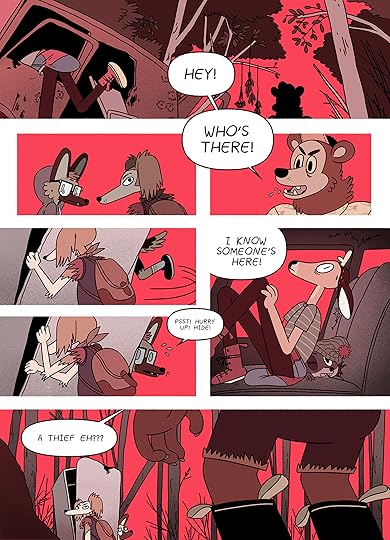 I quite liked the art and the depiction of these anthropomorphic animals in their tattered human clothing. The colors make the illustrations pop. The main story however seemed to lack something and seemed unfinished. I did like how themes of friendship and bullying were handled, but the plot wasn't compelling enough for me. This is written for kids, so it might work much better for that audience.