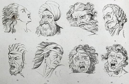 Physiognomy is something nowadays we happily regard as a load of old tosh. Unlike astrology, it doesn't even have dreamy-eyed modern believers – it's just something vaguely associated with old belief systems and imperfect understandings. But if you read old novels, it's everywhere. Emily, examining Valancourt's portrait in Radcliffe's The Mysteries of Udolpho, notes that ‘the soft cloud of the brow spoke of the fine sensibility of the temper’; Jane Eyre sees through Blanche Ingram's pretty hair to the ‘habitual expression of her arched and haughty lip’; in Fielding's Joseph Andrews, Parson Adams remarks that ‘nature imprints such a portraiture of the mind on the countenance, that a skilful physiognomist will rarely be deceived’.