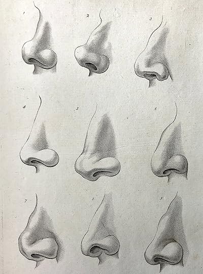 From this plate, we learn that the owner of the nose top-right ‘merits consideration only for his love of order and propriety’, while bottom-left belongs to someone who ‘abandons himself to gross brutality’. The consequences of all this in subsequent European thought would be profound, not only in fiction but in more pernicious ways, too – many of these interpretations would be taken up by commentators in explicitly racist ways, for example, and the same can be said for physiognomy's Victorian lovechild, phrenology.