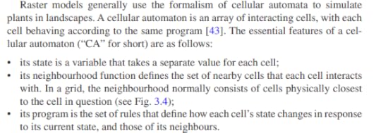 Ecologists have applied cellular automata models to many problems in landscape ecology. One common application has been to identify the way in which particular kinds of spatial patterns form. For example, a team of scientists used CA models to look at the vegetation patterns that resulted from the combination of tree growth rates and the killing capacity of the wind in the subantarctic forest of Tierra del Fuego. They were able to show that simulated patterns for heterogeneous forests with random age distributions matched the patterns observed in nature