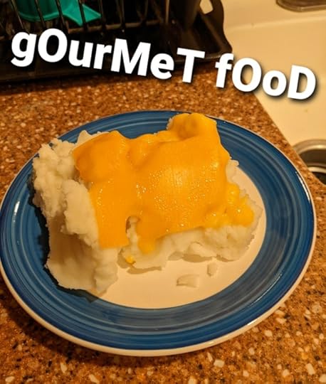He’s a way better cook than I am, so I’ve gotten used to waiting in the chair while he prepares dinner. He proves this when he splits the potatoes open and pops a slice of cheese into each. To be fair, it's not exactly hard to impress someone who got by eating spit roasted rats.