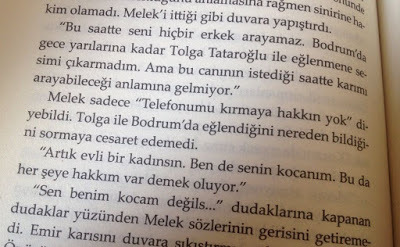 Bunda da kitaba girip "İstediğiyle konuşur sana ne ya sana ne," tribi atasım geldi. Hayır telefon kırmak nedir? Biriyle konuşmasını istemiyorsan adam gibi söylersin nedenleriyle ama son kararı vermek hala karşındaki kişinin bileceği iştir. Kızın arkadaşları olabilir. Ne fark eder evliyse? Hayır bir de, "Ben senin kocanım. Bu da her şeye hakkım var demek oluyor," nasıl bir mantık? Saniyesinde boşamıştım. (!!!)