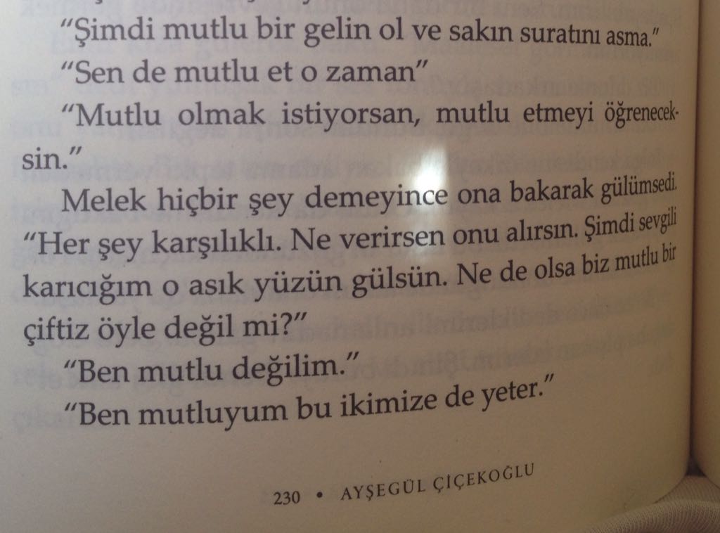 Kitabı sevip sevmemek arasında kaldım fakat emin olduğum tek şey Emir karakterini hiç sevmediğim. Okuduğum en çekilmez ve sinir bozucu karakterdi. Okurken resmen sinir krizi geçirdim. Yazarın yerinde olsaydım kesinlikle mutsuz sonra bitirdim. Melek Emir'i affetmemeliydi. Sonlara doğru okuduğum Emir karakterini inandırıcı bulmadım. Hemen değiştim havalarına girdi ve bu beni aşırı derecede rahatsız etti. 3 puanı da İlknur ve Emre için veriyorum. Onlar sayesinde daha katlanılır bir kitap oldu.