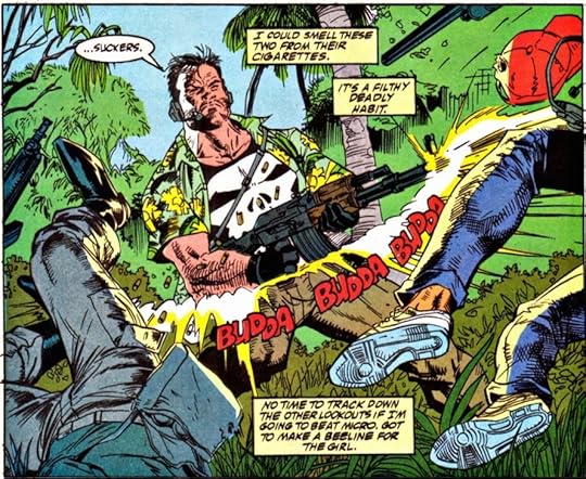 Běh na dlouhou trať. Ale špatné to nebylo. Jim Lee tehdy sice ještě nebyl nic moc, ale nějak se držel. Některé sešity hrozně ukecané, některé trochu nudnější, ale vesměs to byly spíš příjemné záležitosti. Celkem mě ale párkrát zarazilo nelogické chování některých postav - tak třeba Wolverine se chová jako fanatický PETAř a chce zabít Punishera jen proto, že v sebeobraně zabil gorilu a pak mu nedělá problém zabít jinou zvěř a pak ji jen tak nechat ležet. Padouch Bushwacker zase nechá Franka žít, když ho může zabít jen proto, že způsob, jakým se o jeho zabití pokoušel byl "málo umělecký" a během jejich dalšího souboje se místo boje zaobírá tím, že mu dala kopačky jeho stará. Takže v některých případech divné, ale příběhově lepší průměr.