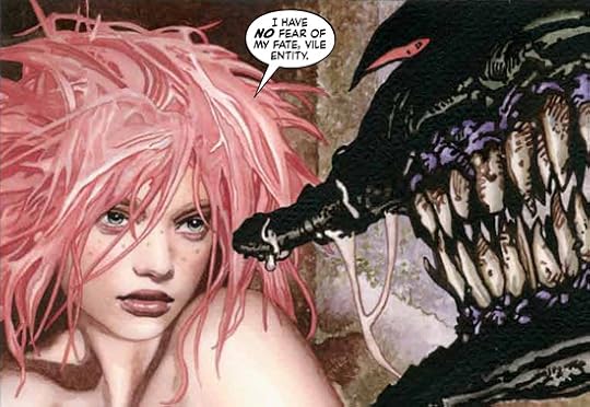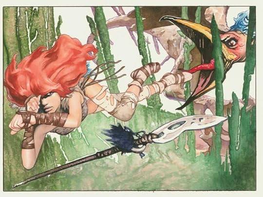 Graphic novel artwork can be hit or miss for me. John Bolton’s artwork is lush and descriptive. It is done in photorealistic watercolours and form a mix of gorgeous and grotesque. When the artwork aims for beautiful it’s stunning. When it doesn’t, there are hideous, misshapen creatures. I really liked the artwork around the young Virtue in book 2, and a lot of Shame’s medieval outfits in book 3. Personally I’m not so keen on the grotesque side of art, and so many panels were not to my liking. Virtue’s old form, for example, is the unattractive, warty witch from traditional fairytales.