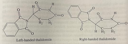 কাইরালিটি রসায়নশাস্ত্রের অত্যন্ত গুরুত্বপূর্ণ একটি অংশ। কোন একটি যৌগের আণবিক বিন্যাস ডানদিকে না বাঁদিকে মুখ করে রয়েছে সেটির ওপর যৌগটির বৈশিষ্ট্য বা ধর্ম নির্ভর করে। থ্যালাইডোমাইড (C13H10N2O4) এমনই একটি যৌগ যার ডানহাতি এবং বাঁহাতি দুরকম বিন্যাসই প্রকৃতিতে রয়েছে। ডানহাতি বিন্যাসে এ যৌগটি ঘুমের ওষুধ হিসেবে কাজ করে। গর্ভবতী নারীরা সকালে যে মর্নিং সিকনেস অনুভব করেন, তার চিকিৎসায়ও কাজে আসে। কিন্তু এই যৌগটিরই বাঁহাতি বিন্যাস গর্ভাবস্থায় শিশুর বিকাশে ভয়ানক ক্ষতিসাধন করে। বাঁহাতি বিন্যাসের C13H10N2O4 গ্রহণ করবার ফলে এ পর্যন্ত প্রায় ১০,০০০ শিশু বিকৃত হাত-পা নিয়ে জন্মগ্রহণ করেছে, যাদের বেশিরভাগেরই মৃত্যু ঘটেছে খুব অল্প বয়সে।