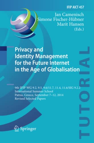 This book contains a range of keynote papers and submitted papers presented at the 9th IFIP WG 9.2, 9.5, 9.6/11.7, 11.4, 11.6/SIG 9.2.2 International Summer School, held in Patras, Greece, in September 2014. The 9 revised full papers and 3 workshop papers included in this volume were carefully selected from a total of 29 submissions and were subject to a two-step review process. In addition, the volume contains 5 invited keynote papers. The regular papers are organized in topical sections on legal privacy aspects and technical concepts, privacy by design and privacy patterns and privacy technologies and protocols.