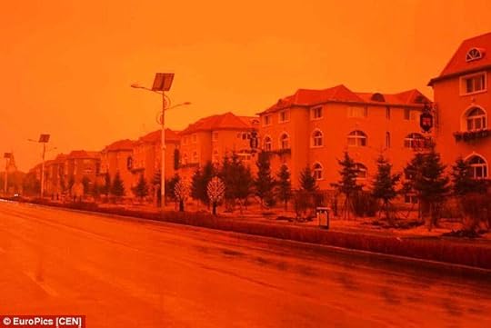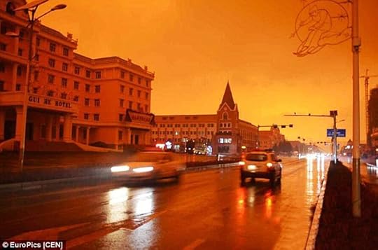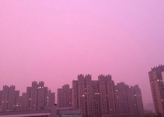 I had been struck in the morning by the news about a Chinese city with a pink sky [yet I had already read about "purple" and "lavender", well, but then back in mid April we had "red" sky in Mongolia!*]....due to pollution.