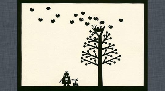 Robot wakes up one morning to discover that he had lost his arm. A search ensues, filled with suggestions for substitute arms. The illustrations are black paper cuts on a beige background and are striking in their intricate simplicity.