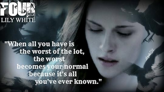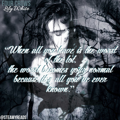 Lily White never ceases to amaze me with her dark and twisted mind. Never! She always leaves me with my mouth hanging open and she always keeps me at the edge of my seat with her evocative writing and captivating tales. I was immersed in this story from the very beginning, devouring every word, every chapter like crazy. 'Four Crows' is a story about revenge, about learning to move on, finding who you are and finding love. It’s a story that evoked many emotions in me and, honestly, I couldn’t put it down for one minute. The chilling plot, the forbidden aspect of the story, the secrets and betrayals made this story a unique read which I enjoyed very much.