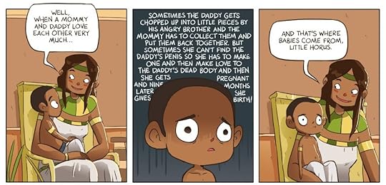 Up until this point, there's been many a hint about the true nature of Shu, the bane of Ace's existence. Forced to be connected for all of eternity, it doesn't help matters much that they hate one another. Much light is shed on their overly complicated relationship, and I really like the fact that despite spending inordinate amounts of time together, neither one really knows the other. All of this couldn't have come at a better time, because the future for both Ace and the gods is about to get ugly. It's certainly a time to have an ally and with Bastet still missing, Shu can easily fill the open ally position.