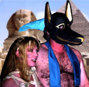 First, there is the slight problem of Anubis the Somewhat Unhinged (AtSU™). Not only was the poor guy born with a jackal head, he is also the god of the underworld and embalmer supreme. No wonder he's a tiny bit on the deranged lunatic side. But I digress. So AtSU™ is kinda sorta after MY boyfriend. And let me tell you, he isn't the type of guy who likes to sing "Kumbaya" in front of a fire and stuff. These ancient Egyptian dudes, so antisocial and unfriendly. We tried to take him camping a couple of times, but he wouldn't hear of it. I even tried sewing a nice little patch to that skirt thingie he wears all the time (to get him in the mood and stuff,) but he said it would seriously cramp his style. I wonder why, it was a pretty cool patch.